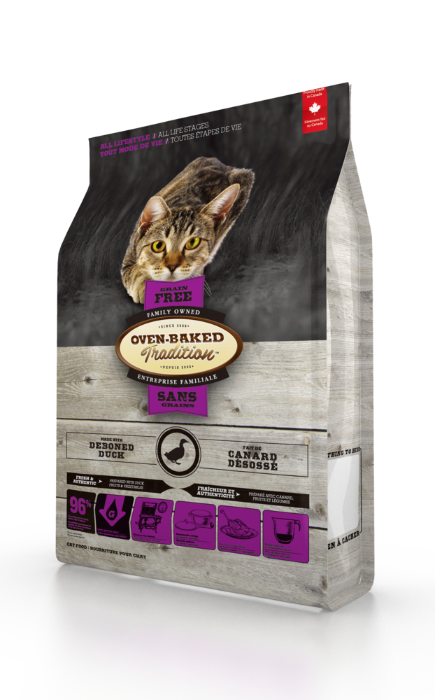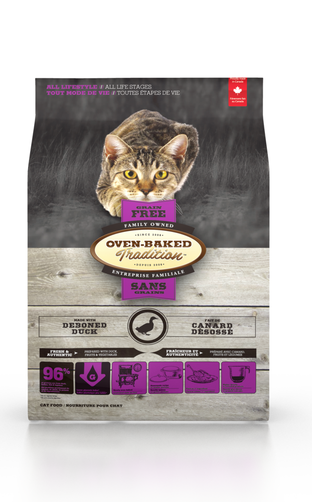 Oven-Baked Tradition повністю збалансований беззерновий сухий корм для котів зі свіжого мʼяса качки — це холістик-корм для котів усіх етапів життя, створений для підтримки здоровʼя та активності. Підходить для щоденного раціону та рекомендований котам із чутливістю до харчових інгредієнтів.